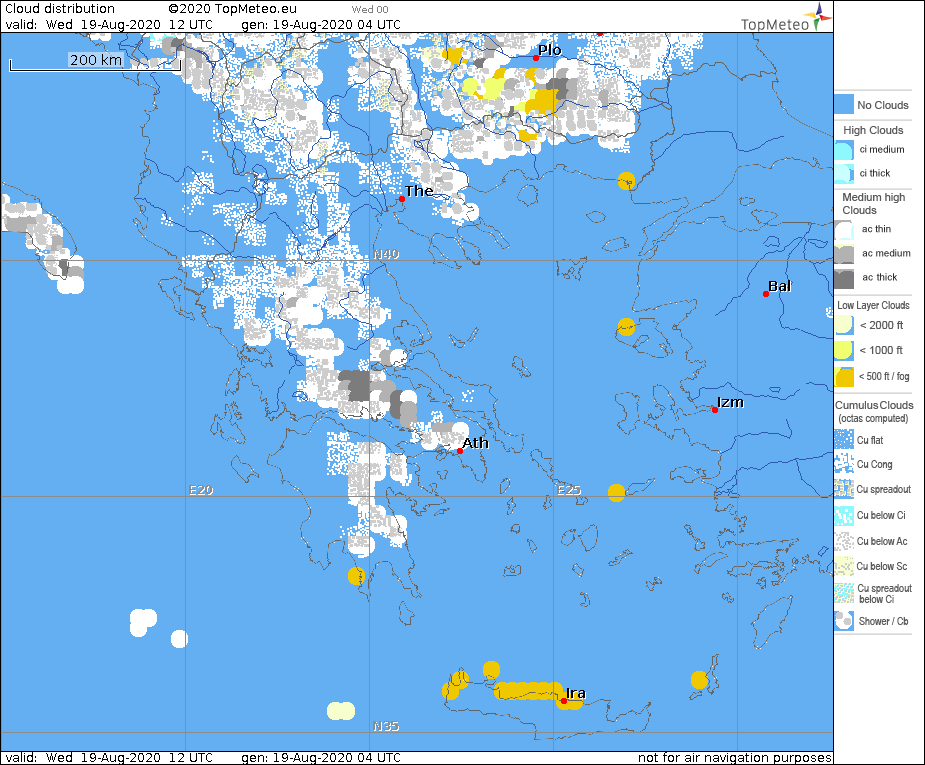 Βάση νεφών: Βόρας αρχικά χαμηλό στρώμα, μετά 1800, 2200 στη νότια πλευρά, Βορεια της Πιπερίτσας 2400-2700, δυτικά 3.000, ανατολικά 1500-1800, Ανατολικό Βέρμιο 1800, Δυτικό Βέρμιο 2200. Δυτικά της Πτολεμαίδας 3000.